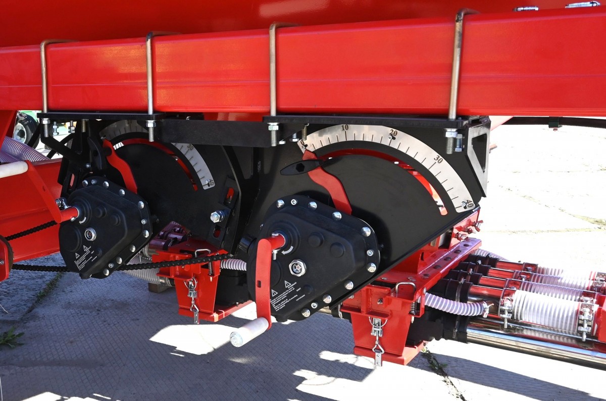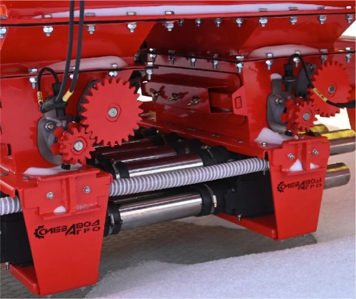 С ворошилкой и 4 распределительными колоннами. Значительно улучшают равномерность высева, а короткие семяпроводы снижают травмирование семян. Нержавеющая сталь устойчива к коррозии и агрессивному воздействию удобрений. Улучшение сыпучести высеваемого материала - ворошилка устраняет эффект «зависания» материала, что важно для точного дозирования.