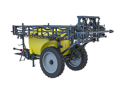 Ширина обрабатываемой поверхности 22 метра, объем бака 2500 литров. Также опрыскиватель оснащен дополнительным промывочным баком на 120 литров и емкостью для мытья рук на 20 литров. По дополнительному заказу может быть оснащен увеличенными колесами 9х42, компьютерным управлением, трех позиционными форсунками и миксером.