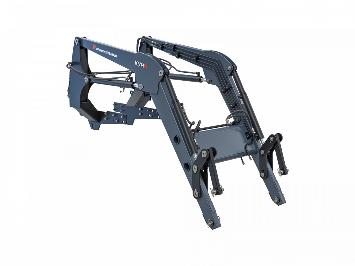 Навесной фронтальный погрузчик КУН-10 агрегатируется с тракторами МТЗ 82 и другими моделями серии 8-й, обеспечивая надёжное сцепление и устойчивость при работе.