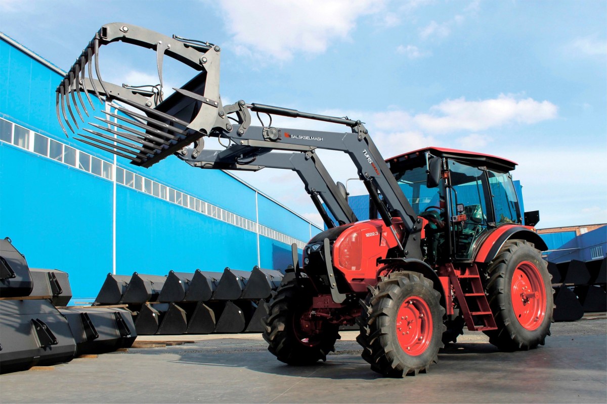 Навесной фронтальный погрузчик КУН (TURS)-1500-0Д-1523.3** агрегатируется с тракторами МТЗ 1222.3 и МТЗ 1523.3, делая их универсальными машинами для выполнения тяжёлых сельскохозяйственных и коммунальных задач.