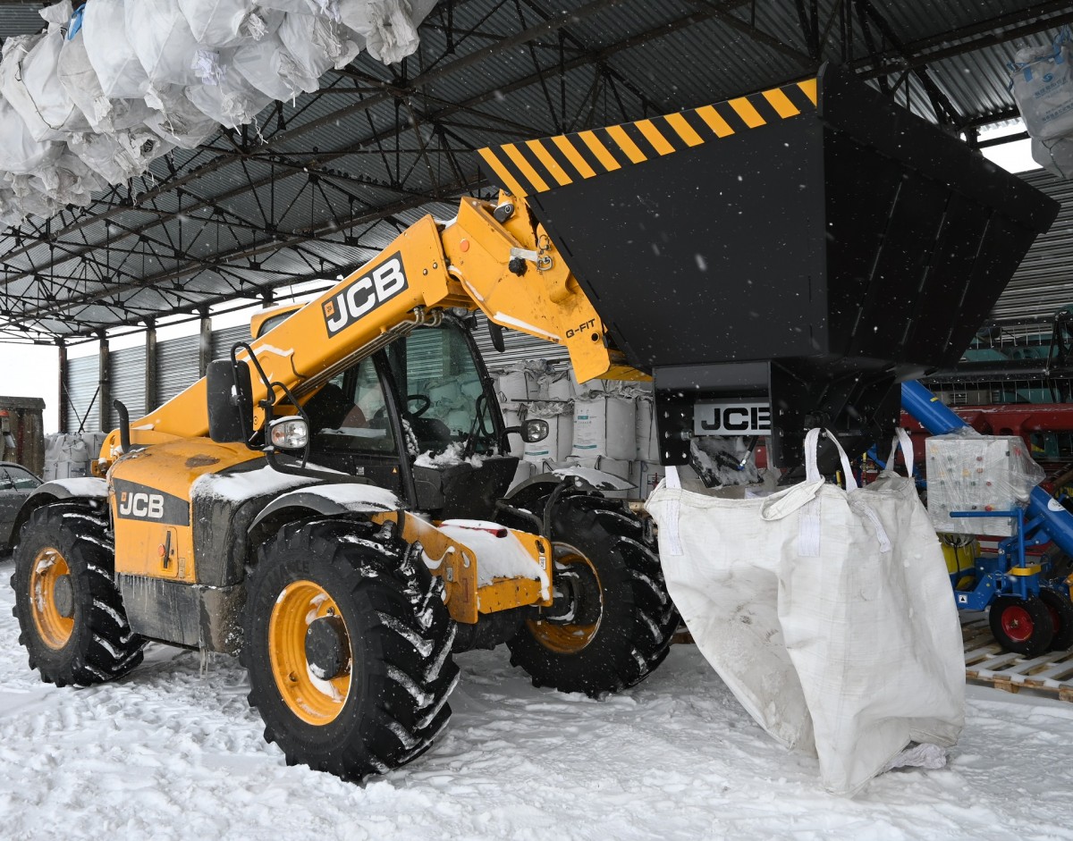 Ковш наполнитель биг бэгов КНБ-1 устанавливается на телескопические погрузчики производства "JCB". Ковш КНБ-1 используется для быстрого наполнения мешков биг бэгов сыпучими материалами и являются хорошей альтернативой стационарным дозаторам. Ковш КНБ-1 позволяет оперативно произвести фасовку мешков биг бэгов сыпучими материалами до 1 м³, так как одновременно выполняет функцию загрузочного ковша и дозатора.