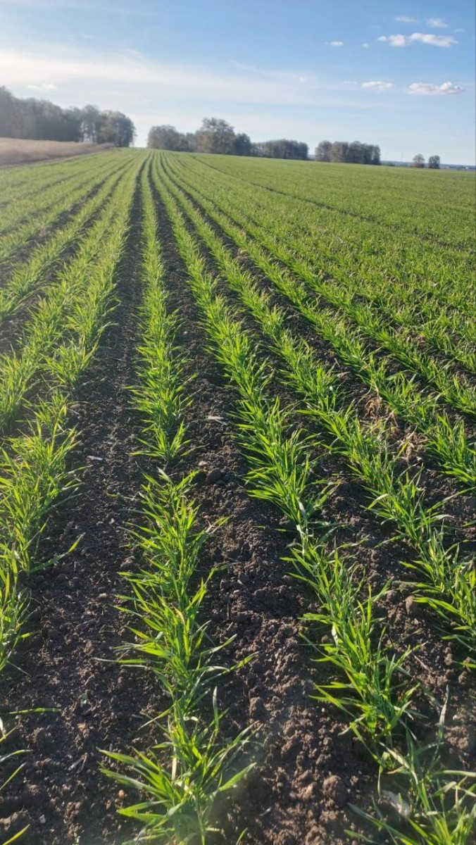 Посев анкерным пневматическим комплексом "Иртыш A". Соблюдается глубина заделки семян, всходы одновременные, дружные и ровные. Отсутствует сорняк на поле.