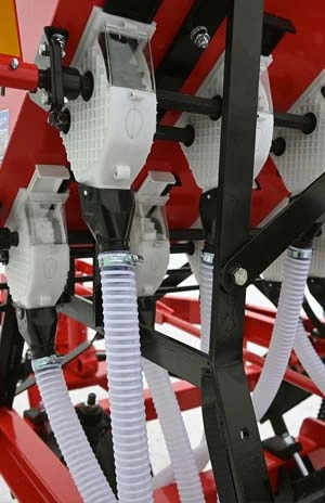 Сошник сеялки СЗУ-2,1 ДР одновременно вносит минеральные удобрения и семена на разных уровнях. Причем стартовая доза удобрений вносится на 3 см ниже уровня посева семян, что создает наиболее благоприятные условия для растений. Корни растений развиваются в направлении источника питания, образуя разветвлённую, корневую систему. Технология разноуровневого внесения семян и удобрений исключает химический ожог семян и по итогам испытаний повышает урожайность до 20%.